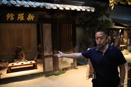 首先,师生们参观了海上丝绸之路博物馆。海上丝绸之路博物馆建立在发掘古船的遗址上,是目前我国唯一陈列有外国古船的博物馆。袁教授结合蓬莱水城出土的四艘元明古船及文物,讲述了中国登州与朝鲜半岛、日本列岛的交往历史。登州是古代中国北方对外交往的枢纽,推动了中国与朝鲜半岛、日本列岛的政治、经济及文化交流。师生们深刻感受到,古代登州商业贸易繁荣,外事活动频繁,是一个国际化的港口城市。