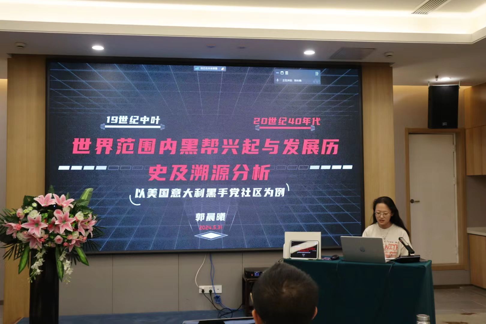 郭晨曦同学的《世界范围内黑帮兴起与发展历史及溯源分析——以19世纪中叶-20世纪40年代美意两国黑手党社区为例》以美国和意大利的黑手党为典型案例,从多个角度对两国黑手党的发展历程、产生因素进行了系统的梳理与分析,同时将黑手党与中国的黑帮组织川西袍哥进行了对比研究,由吴天宇老师代蒙曼老师发言,认为在文章的整体结构和写作上表现出了一定的学术素养,条理清晰,论证充分,但在一手史料和外文史料的引用与分析上仍显不足。