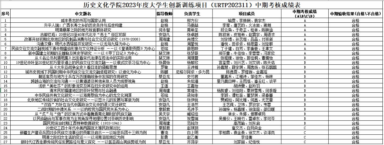 2023年老员工创新训练项目中期考核成绩公布