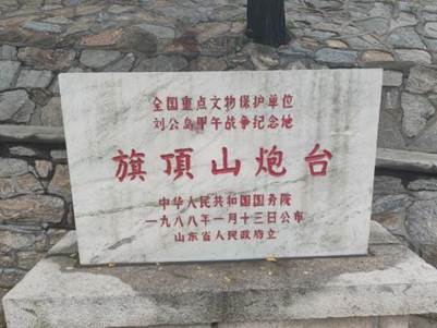 随后,第一小组登上旗顶山,参观了旗顶山炮台,遗憾的是北洋海军忠魂碑未开放,不能近距离参观;