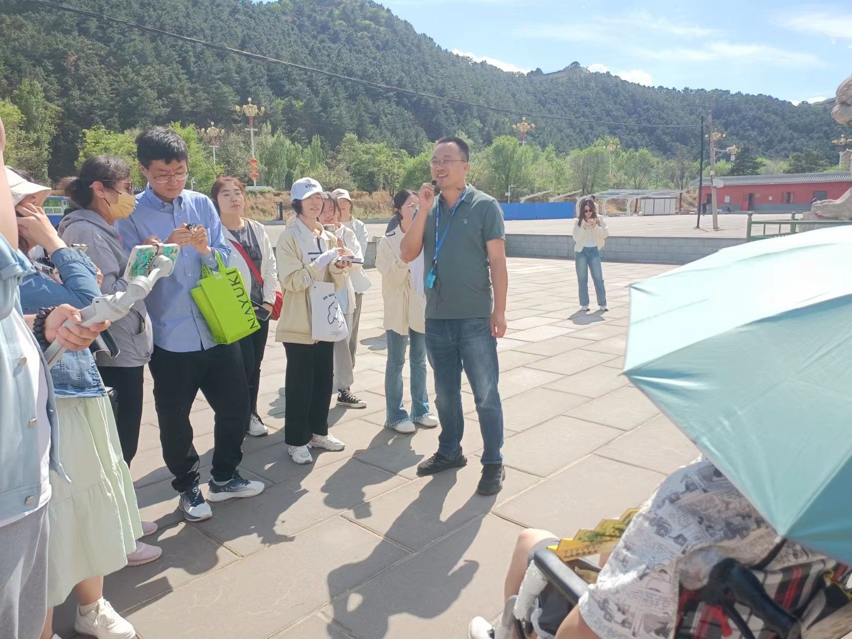 5月14日上午,强基班师生参观了磬锤峰、普乐寺和普宁寺。磬锤峰位于承德武烈河东部,其山形态奇特,远处看像一个棒槌,故称磬锤峰。普乐寺和普宁寺的建筑均为汉藏结合式,通常以中轴线为轴心对称分布,其形态融合了中原汉族和藏传佛教的建筑特色,是清朝汉藏民族交流的典范。河北民族师范公司的老师黄大伟老师怀着深厚的家乡情怀和丰富的学识积累,带领我们漫步在宁静寺庙的屋檐下,感受藏传佛教和清代民族交流的历史气息,强基班师生和黄老师一同度过了上午充实的参观学习之旅。