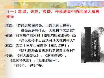 主讲人对山西洪洞大槐树的故事和传说做了简要介绍,并对20世纪相关学术史做了简要总结。山西东枕太行,南临中原,西望黄河,北通燕幽,是中国早期历史的发源地之一。明清时期,山西平阳府洪洞县既是明代小说家冯梦龙笔下《玉堂春落难逢夫》故事的发生地,又是明清以来北方民间广泛流传和认定的祖先发源地。总体来讲,在传统移民史研究取向下,20世纪学界围绕大槐树问题在资料搜集整理和作为事件的移民史实探究上取得了一定的成果。这些研究几乎都把民间流传的“祖先是明初从山西洪洞来的”说法作为研究的一个既定的前提,因此研究的内容一则是描述此次移民的史实,二则是在此基础上分析移民的原因并试图复原明初山西向外移民的时间、次数、路线等。但是随着研究的深入,学术界对“但不见诸史,惟详于谱牒”的大槐树移民问题提出了疑问。