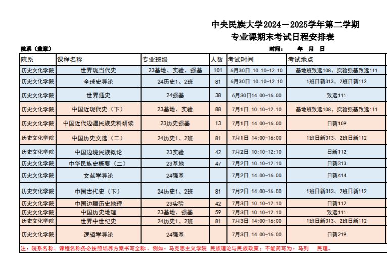 2024-2025-2学期期末考试时间安排