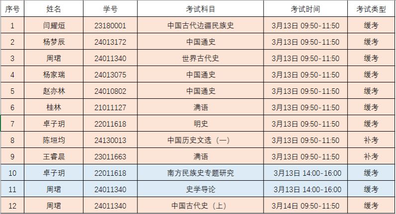 2024-2025-1学期缓考补考时间安排