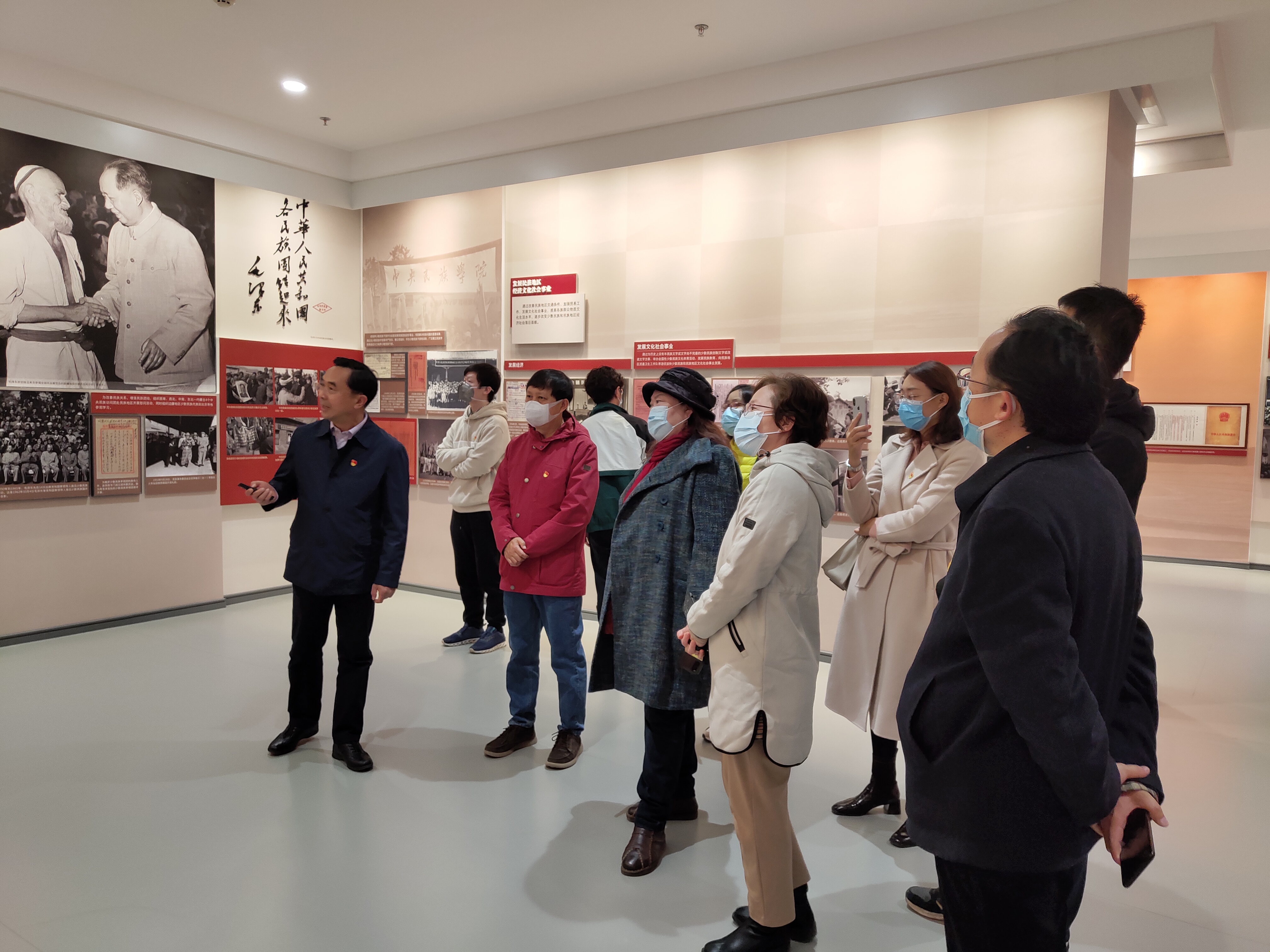 为生动开展建党百年党史学习教育主题活动 ,3月17日下午,历史文化公司党委组织教工党支部部分教师党员代表以及员工党支部部分员工党员代表,赴中央民族干部公司参观学习中国共产党民族工作历史陈列展。