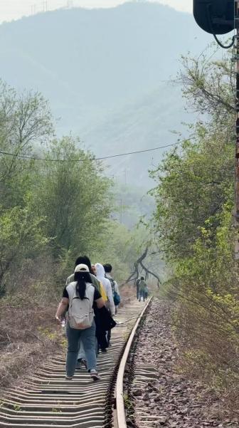 在斜河涧铁路广场,师生们实地考察了京门铁路旧址,感受工业文明与传统商道的跨时空对话。在周海建老师的引导下,同学们认识到,20世纪初由詹天佑主持修建的京门铁路,既是近代中国追求现代化和科技自强的历史见证,也延续着古道“连接多元、促进整合”的文化基因。当蒸汽机车取代传统商队,当中国共产党在京门铁路沿线传播革命思想,不同时期的文明成果在这里交汇融合,折射出中华民族在现代化进程中百折不挠的优良品质和勇往直前的奋斗精神。