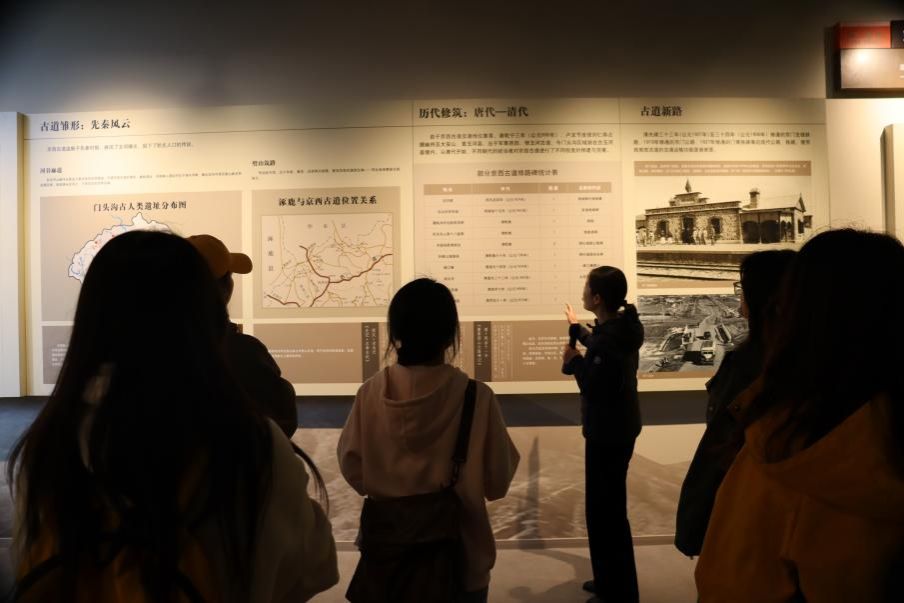 活动首站来到国内首家古道专题博物馆——京西古道博物馆。馆内通过沙盘复原的“驼铃古道”,生动再现了千余年来商队穿越燕山山脉、连接晋冀蒙三地的历史场景。在讲解员的专业解说下,同学们深刻认识到,京西古道不仅是古代北方茶马贸易的重要通道,更是汉、蒙、回等多民族交往交流交融的历史见证。特别是明清时期“以煤兴商、因路成镇”的发展模式,充分展现了不同民族在经济协作中形成的共生关系,共同铸就了京津冀地区“你中有我、我中有你”的经济文化格局。师生们通过文物陈列与数字技术的有机结合,系统梳理了古道作为“民族交融纽带”的历史脉络:从唐代幽州节度使治下的军事通道,到元代大都“煤粮生命线”,再到明清晋商驼队与本地窑主的协作网络,每一件文物、每一段解说都生动诠释着中华民族“多元一体”格局的形成过程。