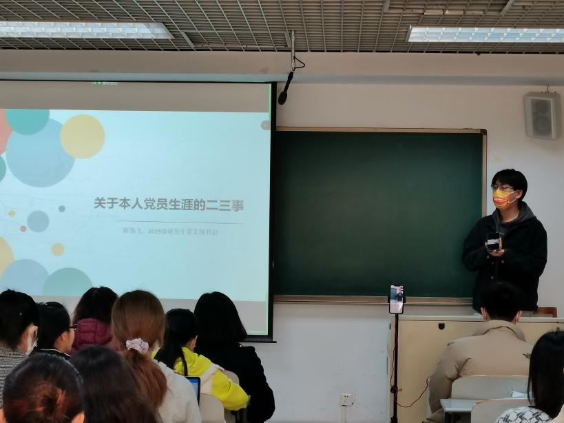 仪式第四项,2019级硕博研究生党支部书记、2021年来利国际旗舰厅优秀共产党员陈逸飞同志作为员工代表上台发言。