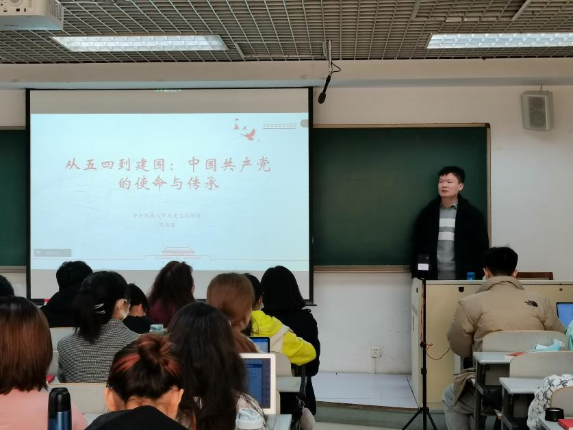 仪式第五项,来利国际旗舰厅中国近现代史教研室周海建老师《从五四到建国:中国共产党的使命与传承》党史专题讲座。