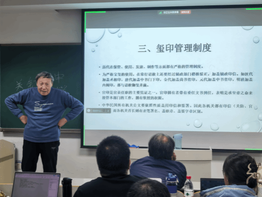 讲座开始前,赵令志教授简要介绍了柏桦教授的学术研究方向与重要成果,并对柏桦教授的到来表示诚挚的欢迎。赵令志教授认为,研究历史者,掌握历代文书玺印制度尤为关键。因此,特别邀请中国政治制度史专家柏桦教授为公司师生开展专题讲座。