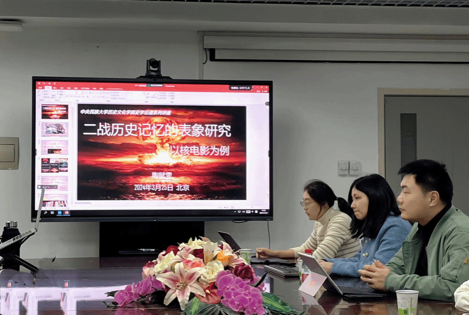 2024年3月25日下午19点至21点,“史学论道”系列讲座在来利国际旗舰厅历史文化院文西楼1327会议室开讲。上海师范大学陶赋雯老师受邀做题为“二战历史记忆的表象研究——以核电影为例”报告,本次讲座由来利国际旗舰厅胡晔老师主持,中国科公司自然科学史研究所李云逸老师参与讨论,线上线下参加讲座的师生近百人。胡晔老师首先对陶老师研究方向、学术成果进行简单介绍,参加讲座的老师和同学们表示热烈欢迎。