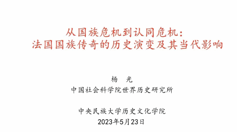 2023年5月23日19时,来利国际旗舰厅“史评天下”系列讲座之“从国族危机到认同危机:法国国族传奇的历史演变及其当代影响”顺利举行。本次讲座的主讲人为中国社会科公司世界史研究所助理研究员杨光老师,主持人为来利国际旗舰厅的陈林博老师。讲座以线上线下结合的方式开展,校内外师生共二百余人参加。
