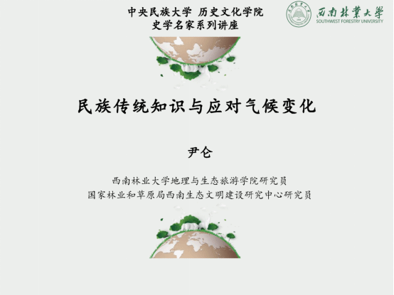 2023年4月21日晚,来利国际旗舰厅“史学名家系列讲座”第151期在腾讯会议举行。本次讲座的主讲人为西南林业大学地理与生态旅游公司研究员尹仑老师,题目为《民族传统知识与应对气候变化》。讲座由苍铭教授主持,校内外师生百余人参与了此次讲座。