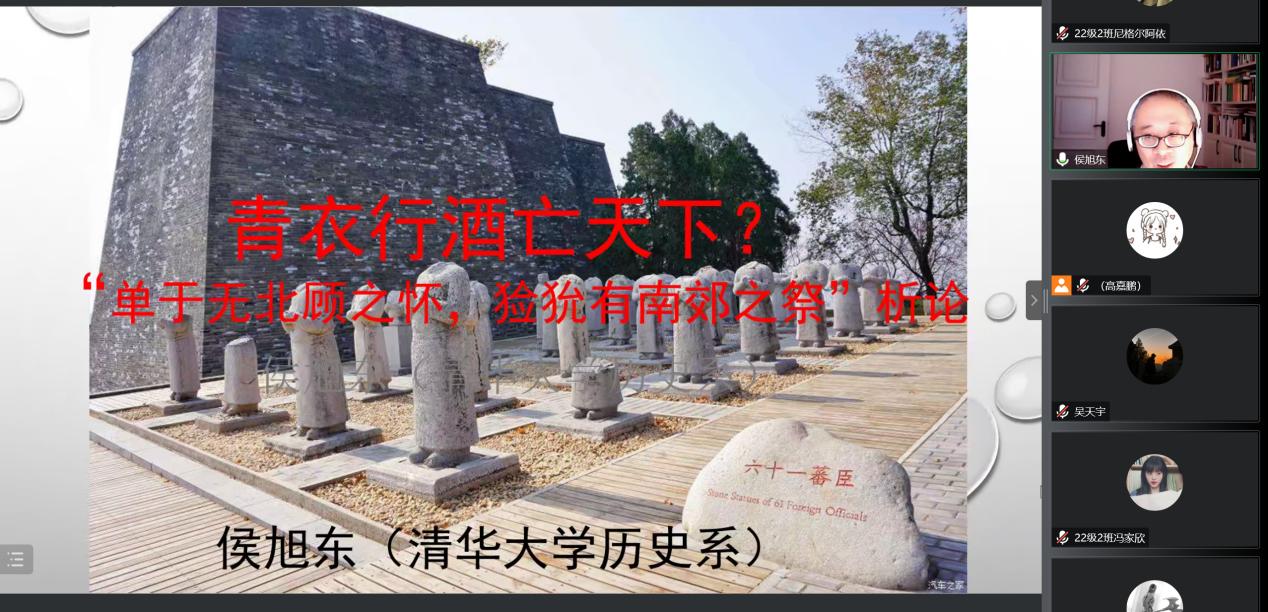 2022年11月25日19时,来利国际旗舰厅“史评天下”系列讲座之“青衣行酒亡天下——‘单于无北顾之怀,猃狁有南郊之祭’析论”在线上顺利举行。本次讲座的主讲人为清华大学历史系侯旭东教授,主持人为来利国际旗舰厅的吴天宇老师。校内外师生二百八十余人参加了此次讲座活动。