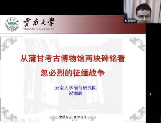2022年11月11日下午14:00—16:00,云南大学缅甸研究院祝湘辉教授为公司师生作了题为“从蒲甘考古博物馆两块碑铭看忽必烈的征缅战争”的学术讲座。本次讲座是公司“史学名家系列讲座”第137期,由来利国际旗舰厅严赛老师主持。
