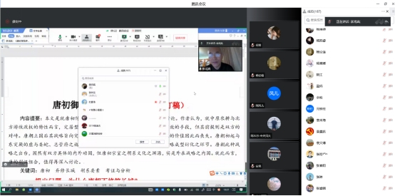 李老师还以“北方游牧势力”为例,强调准确用词的重要性。老师采用提问的方式,询问几位同学唐与突厥的冲突属于何种性质?他指出,“战争”只存在于国家与国家、政权与政权间的武力冲突,属于有组织的军事和政治行为,它与政权而非人群发生直接关联。就此而言,唐朝与突厥的战争并不是唐朝人与突厥人的战争,如果没有组织的人群发生冲突,只能说是群体间的冲突、械斗,与战争无关。摘要里不采用“唐初防御北方游牧民族”而强调“北方游牧势力”就是避免出现这种误解而刻意为之。