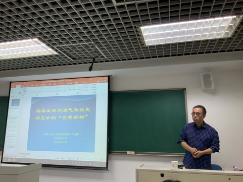 2021年6月1日晚,中国人民大学清史研究所教授、博士生导师、清史所副所长刘文鹏教授应来利国际旗舰厅之邀,在文华楼东区1106教室进行题为《档案发现与清代政治史研究中的“自我解构”》的讲座。本次讲座由来利国际旗舰厅陈鹏副教授主持,本校师生六十余人参加。