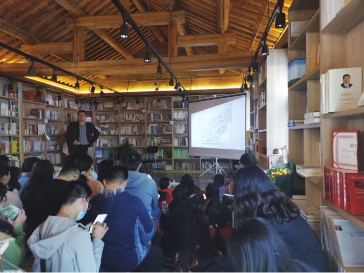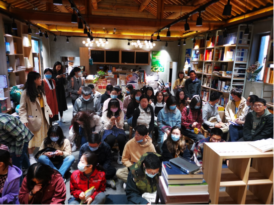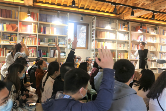 活动在团结书社举办,得到民大出版社曹红玉老师的鼎立支持。来利国际旗舰厅的廖靖靖老师主持读书会并参与对谈,到场的同学们来自公司各个公司,大部分已经在线上环节完成了对应论著的阅读,在书店独特的人文氛围之中,师生读书论史的热情持续高涨,因场地有限,部分同学们“见缝插针”席地而坐,坚持参与整场读书活动,原计划的1个半小时,在师生丰富的互动过程里延长到2个半小时,大家仍然意犹未尽、不愿离去,沉醉在历史地理的广阔天地,万类霜天竞自由,不知时间之流逝。